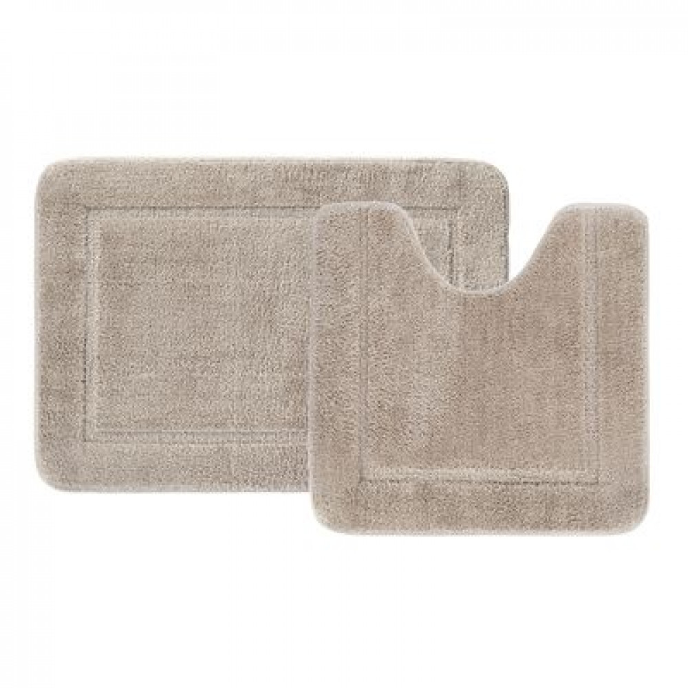 Набор из двух мягких ковриков для ванной стильного светло-коричневого цвета с плотным невысоким ворсом (1 см), очень приятных на ощупь