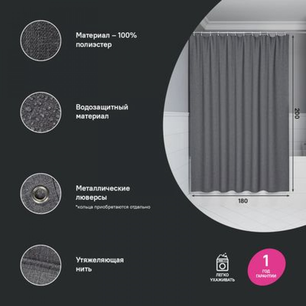 • Легко ухаживать: шторку для ванной комнаты можно стирать в стиральной машине в деликатном режиме и гладить утюгом на минимальной температуре.
