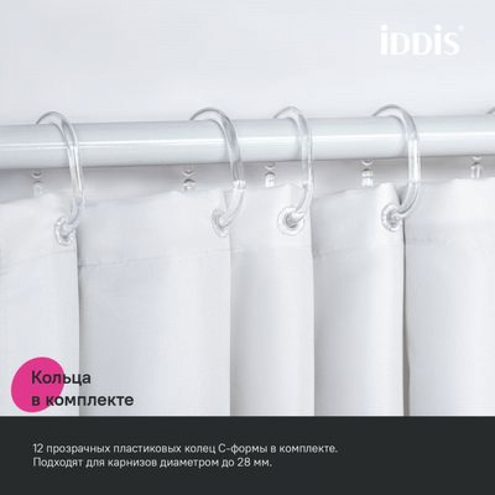 Штора для ванной, 200x180 см, Полиэстер, серый, IDDIS (BW01P18i11)