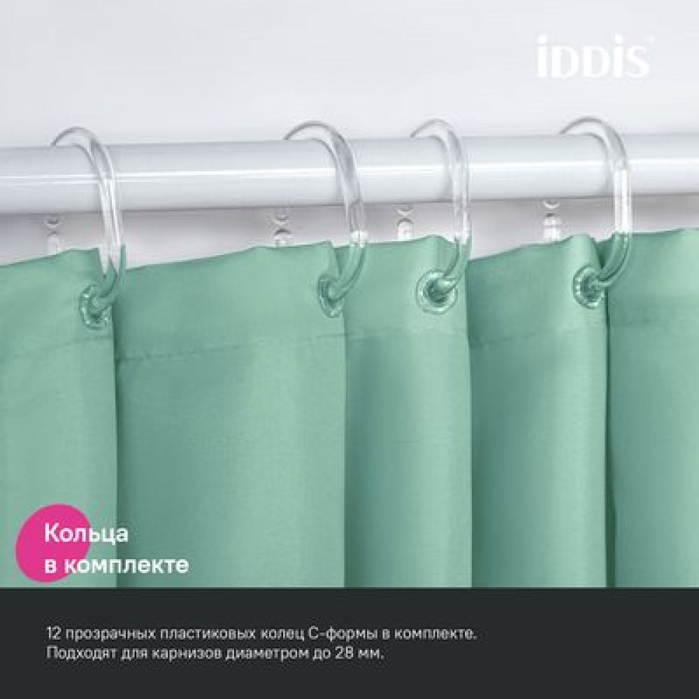 Штора для ванной, 200x240 см, Полиэстер, зеленый, IDDIS (BL05P24i11)