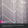 Текстильная штора для ванной серого цвета с белым геометричным узором подойдет и к светлому, и темному интерьеру