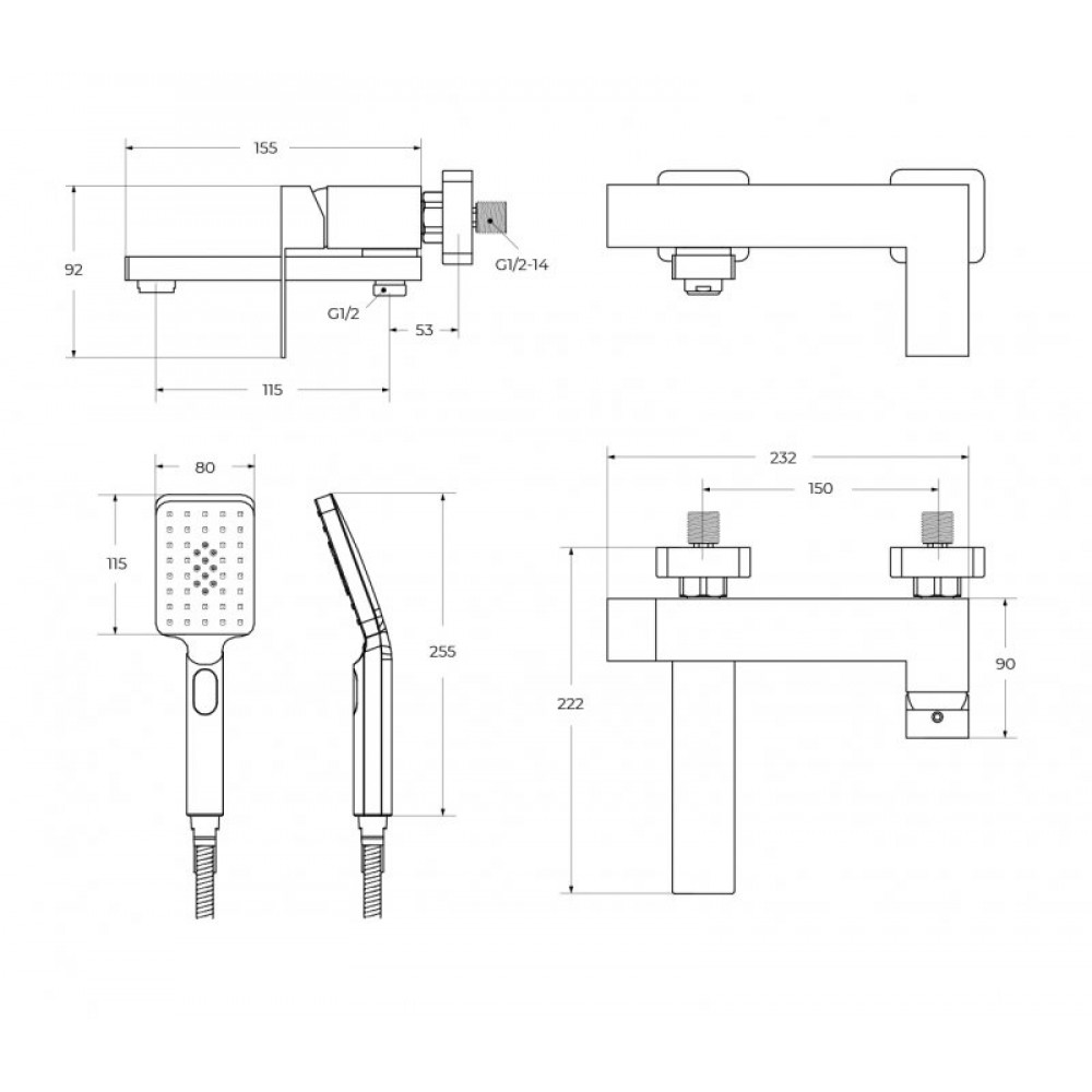 | Наименование | Смеситель для ванны и душа в комплекте с ручным душем, шлангом и держателем |