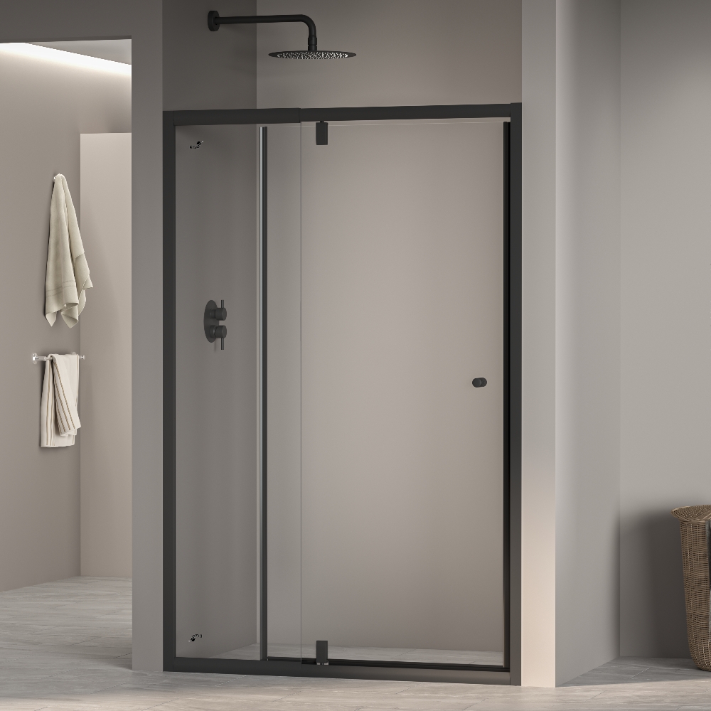 Главной особенностью этой душевой двери является её черный профиль, который придает ей стильный и современный вид.