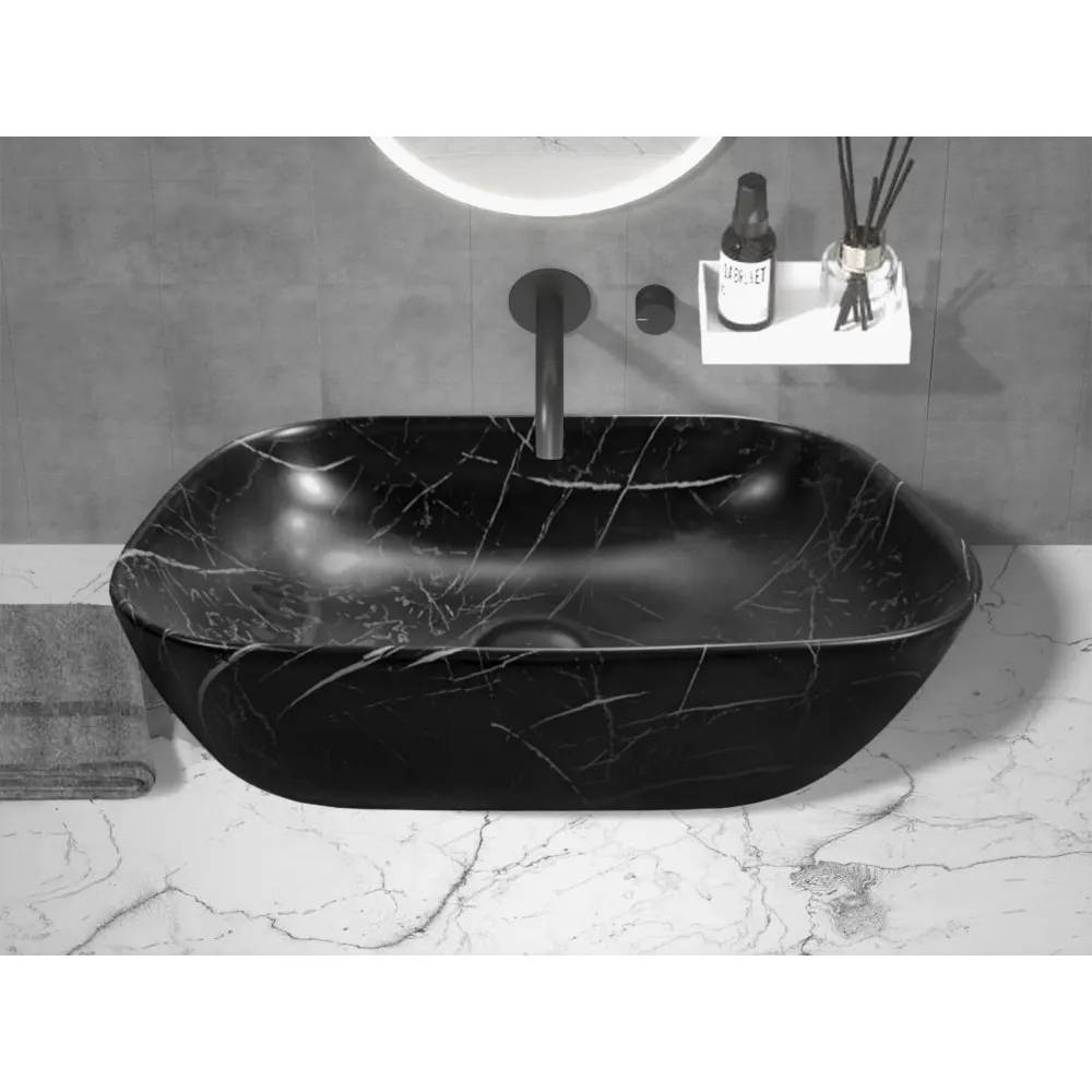 Раковина CR8217MMB накладная, мрамор матовый черный, прямоугольная 500х395х145 Ceruttispa