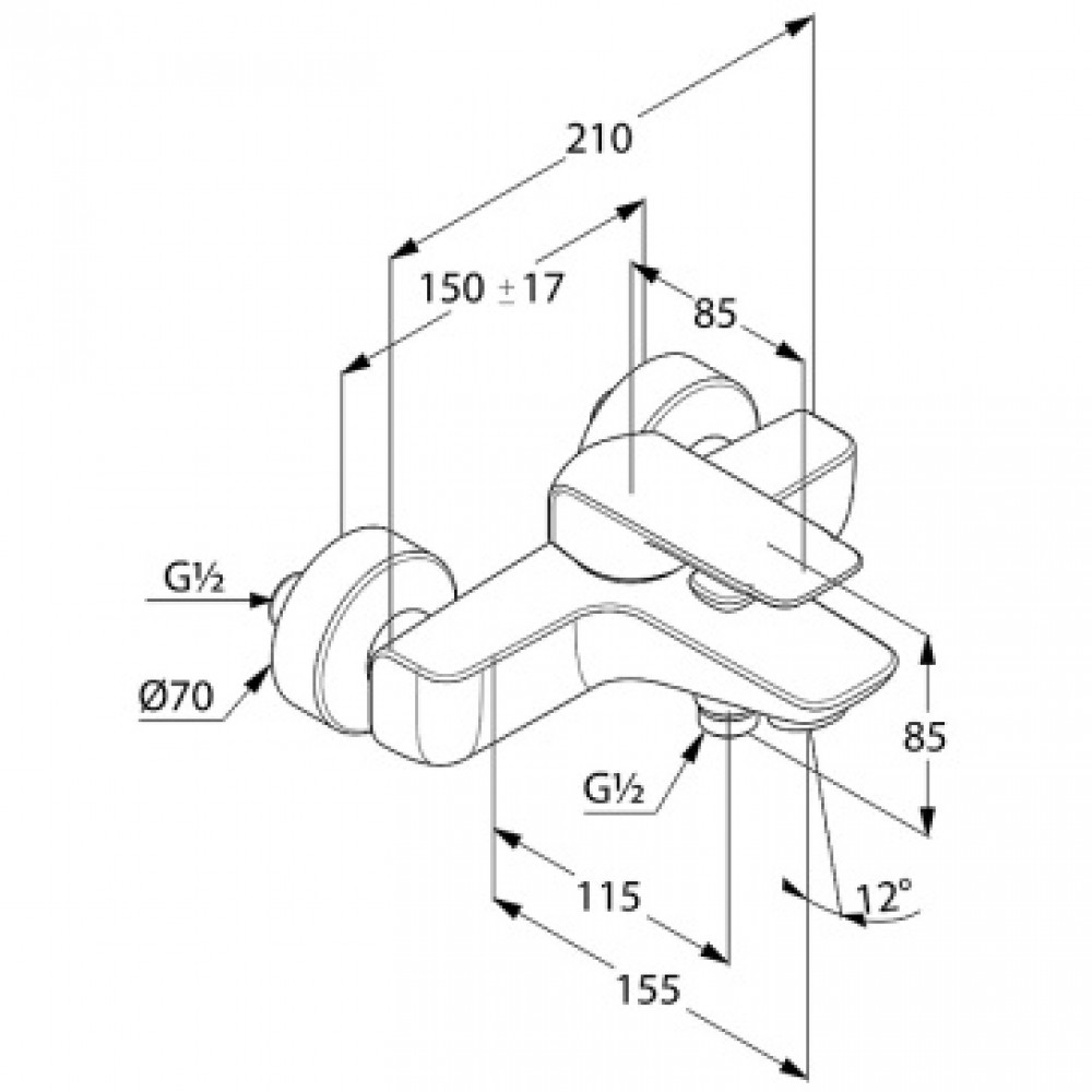 Технические характеристики KLUDI AMEO Однорычажный смеситель для ванны и душа, арт. 414450575