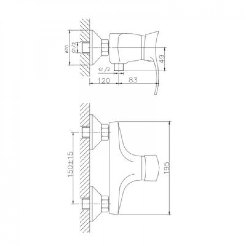 Диаметр декоративных чашек 70 мм. Душевой гарнитур в комплекте. Межосевое расстояние (расстояние между выходом горячей и холодной трубы) 150 мм. Данное расстояние изменяется за счет входящих в комплект эксцентриков на 15 мм. в большую или меньшую стороны. Цвет хром.
