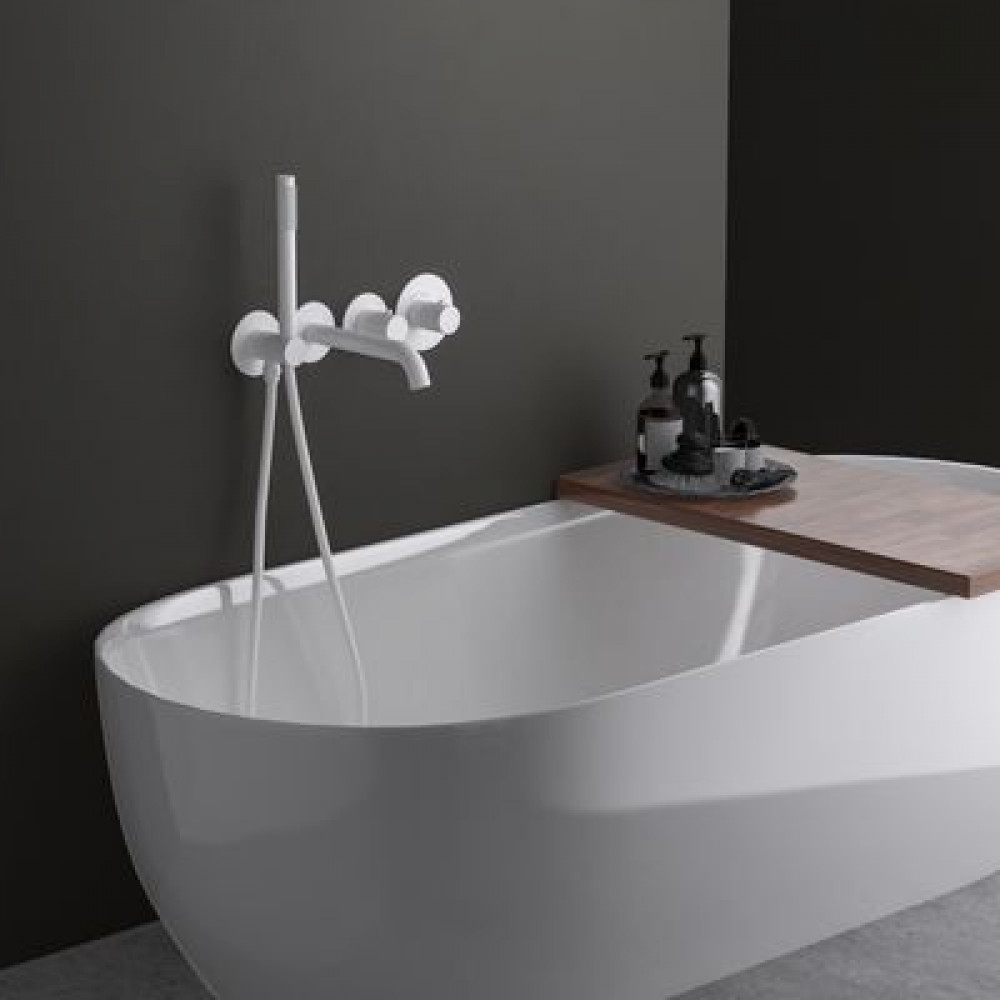 Смесители белого цвета универсальны и могут сочетаться с аксессуарами и отделкой стен разных цветов.
