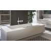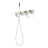 Смесители белого цвета универсальны и могут сочетаться с аксессуарами и отделкой стен разных цветов.