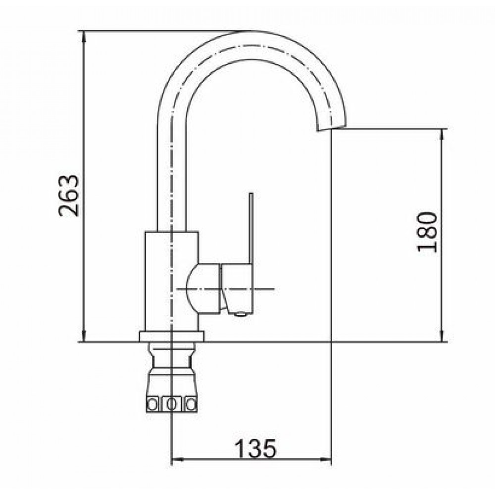 Смеситель для кухни FASHUN (A54001-1) сатин, H=263 мм, сталь SUS304, картридж D=35 мм, излив H=180 мм, гибкая подводка: 450 мм в комплекте, крепёж: гайка