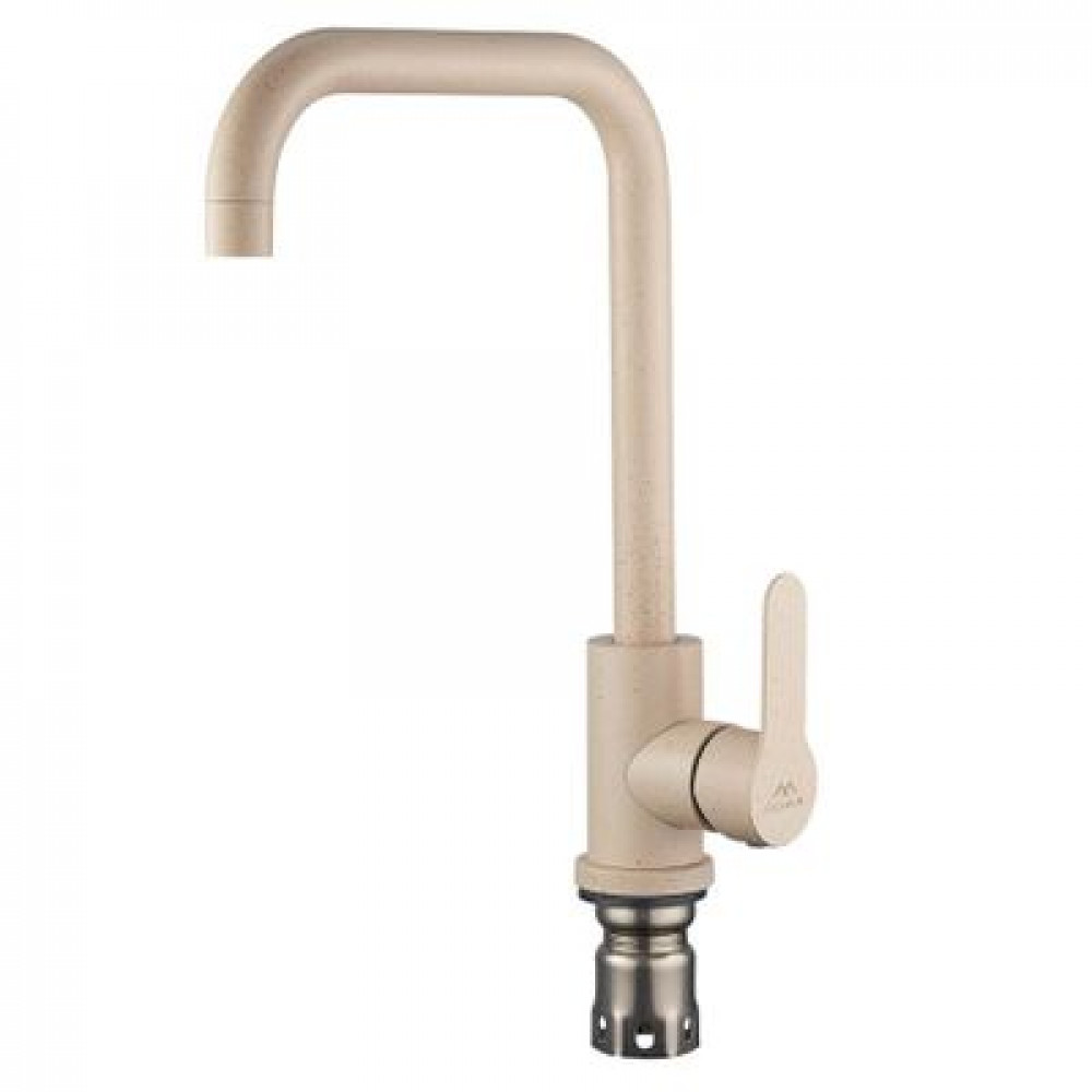 Смеситель для кухни FASHUN (A54201-13) песочный, H=342 мм, сталь SUS304, картридж D=35 мм, излив Г-образный H=262 мм, гибкая подводка: 450 мм в комплекте, крепёж: гайка