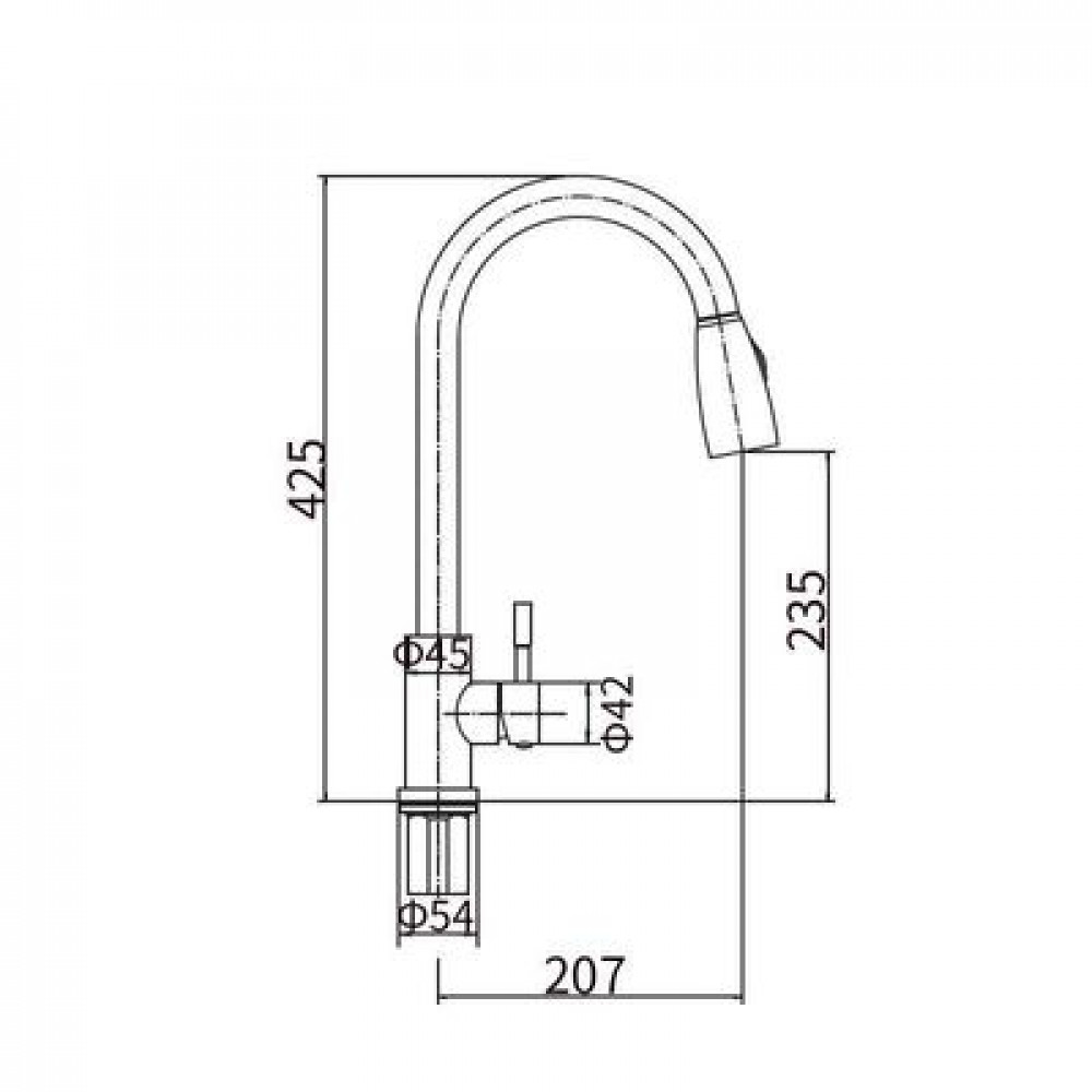смеситель для кухни с вытяжной лейкой, H=425 мм