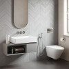 Встроенный блок может быть установлен с левым или правым подключением гигиенического душа. Гигиенический душ можно установить автономно на любом расстоянии от смесителя. Для использования гигиенического душа включать смеситель не требуется. Подача воды на гигиеническую лейку осуществляется нажатием кнопки, расположенной на корпусе держателя лейки. В смесителе установлен термостатический картридж для поддержания стабильной температуры воды в смесителе и гигиеническом душе.