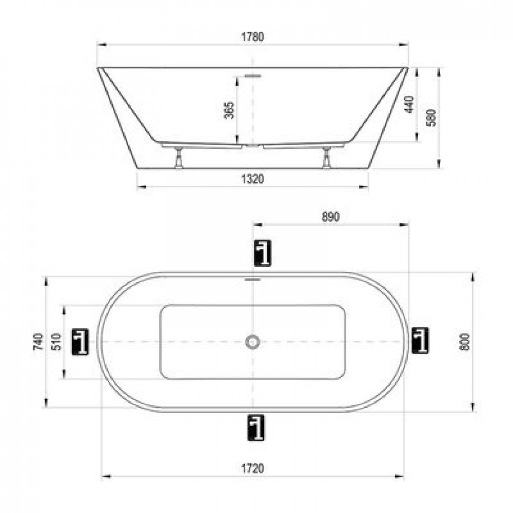 Технические характеристики Ванна акриловая Ravak SOLO 178х80, белая, отдельностоящая