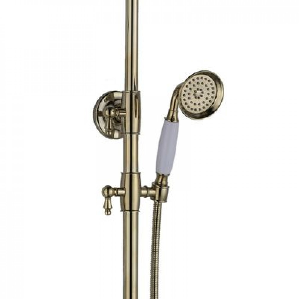 Изготовлена из высококачественной латуни. Прекрасный тропический душ. Излив для наполнения ванны. Душевая штанга регулируется по высоте от 117 см до 157 см.