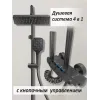 головной (тропический) душ – выполнен из ABS- пластика, оснащен силиконовыми форсунками для самоочистки системы от налета. Душ имеет увеличенный размер – целых 30см в длину и 20см в глубину. Возможна не только регулировка излива по высоте штангой держателя, но и вращение ее на 90 градусов вправо/влево. Сам излив крепится к ней шарниром, который позволяет вращать душ и отклонять в пределах 20-30 градусов.