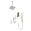 Верхний душ с вертикальным потолочным креплением выполнен из латуни. Термостатический картридж поддерживает стабильную температуру воды, обеспечивая максимально комфортные условия для принятия водных процедур. Регулируя напор воды в режиме "тропический душ" можно получить массажное воздействие различной интенсивности. Основные преимущества встроенной системы: элегантный внешний вид, все коммуникации и крепления спрятаны в стену, снаружи видны только декоративные элементы. Установить встроенную систему можно в любом месте. Использовать такой смеситель очень удобно, стильная стойка из латуни позволяет установить ручную лейку-карандаш на необходимую высоту. Регулировка температуры воды осуществляется ручкой термостата (расположена снизу). Включение режима "тропический душ" и регулировка напора осуществляется поворотом ручки дивертора (расположена сверху) влево. В положении ручки дивертора 12:00 режим "тропический душ" выключен. Для переключения в режим "излив" поверните ручку дивертора (расположена по центру) от 12:00 против часовой стрелки. Увеличение напора воды регулируется поворотом ручки влево. Для переключения потока воды с излива на ручной душ, поверните излив к стене. В положении ручки 12:00 режим "излив" выключен. Сложностей монтажа не возникает при установке элементов душевой системы опытным сантехником. Внимательно изучите инструкцию по монтажу и эксплуатации.